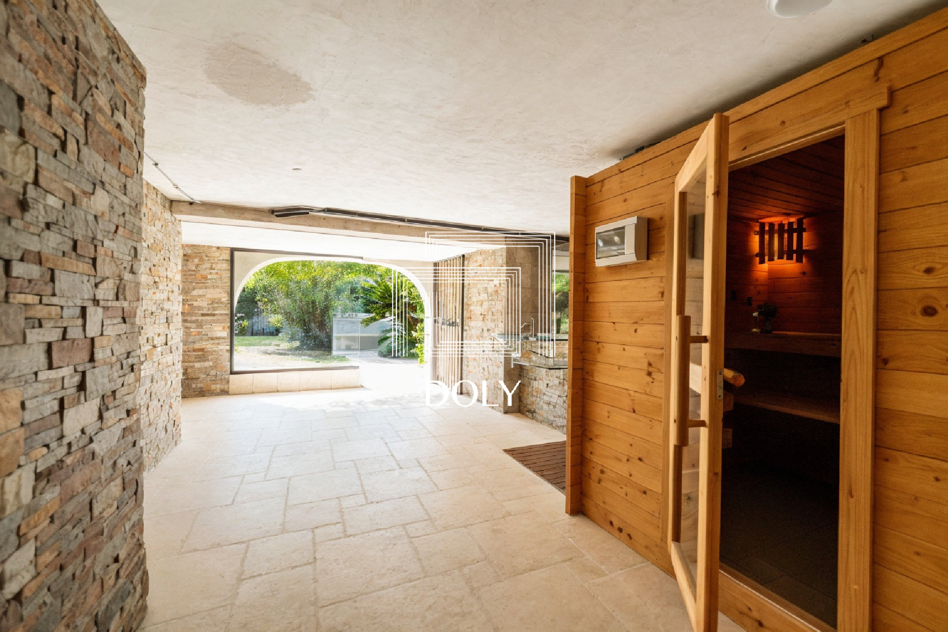 Le jardin est composé d’un beau terrain ensoleillé exposé OUEST dotée d’une piscine, de plusieurs espaces verts, d’un spa avec un sauna, une cuisine supplémentaire et d’un atelier.