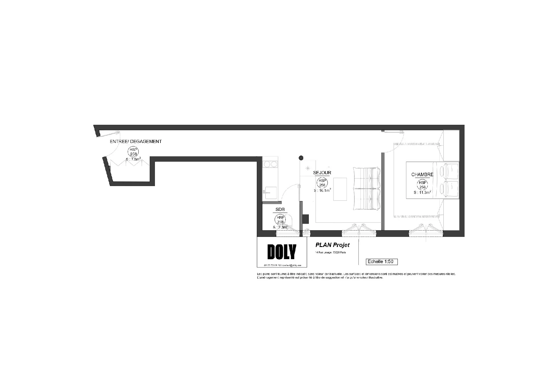 DOLY – Appartement 38m2 – 2 pièces – 75020