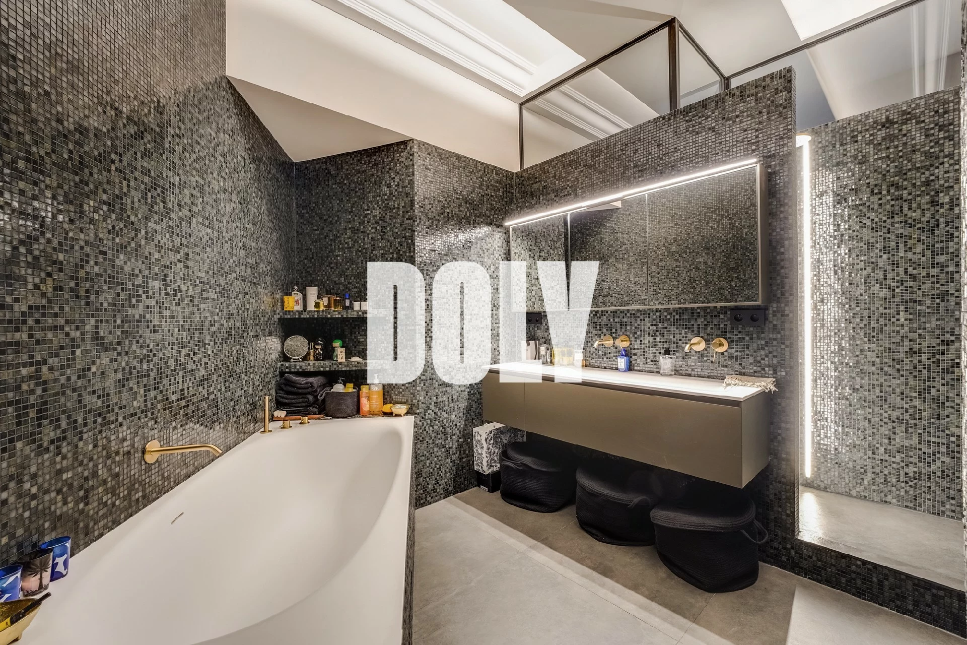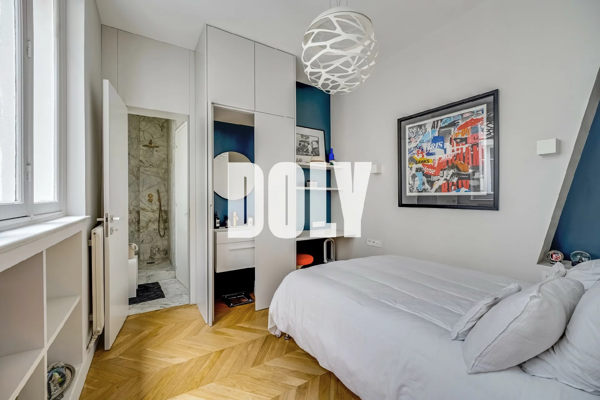 Accessible également par la chambre , un dressing entièrement aménagé, un vaste bureau et une salle de bains avec douche et baignoire ( possibilité de rendre les accès indépendants).